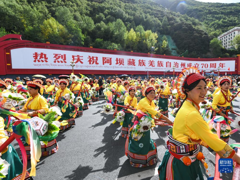當日,來(lái)自四川省阿壩藏族羌族自治州13個(gè)縣市的近千名演員在馬爾康市街頭開(kāi)展巡游活動(dòng),展示阿壩州各個(gè)地區的非遺文化。據了解,非遺展演是阿壩州成立70周年系列慶?;顒?dòng)之一。同時(shí),當地還開(kāi)展非遺集市、非遺晚會(huì )等活動(dòng)。