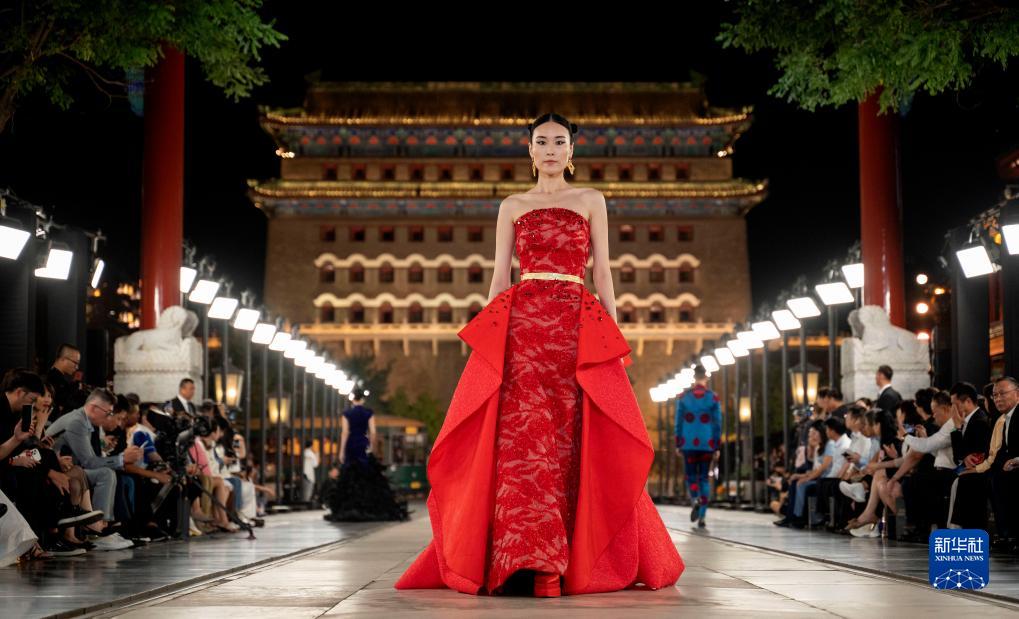 9月15日晚,2024春夏北京時(shí)裝周開(kāi)幕式在北京前門(mén)大街舉行,在開(kāi)幕式上,勞倫斯·許攜高級定制時(shí)裝上演“壯美中軸線(xiàn)”時(shí)尚大秀。