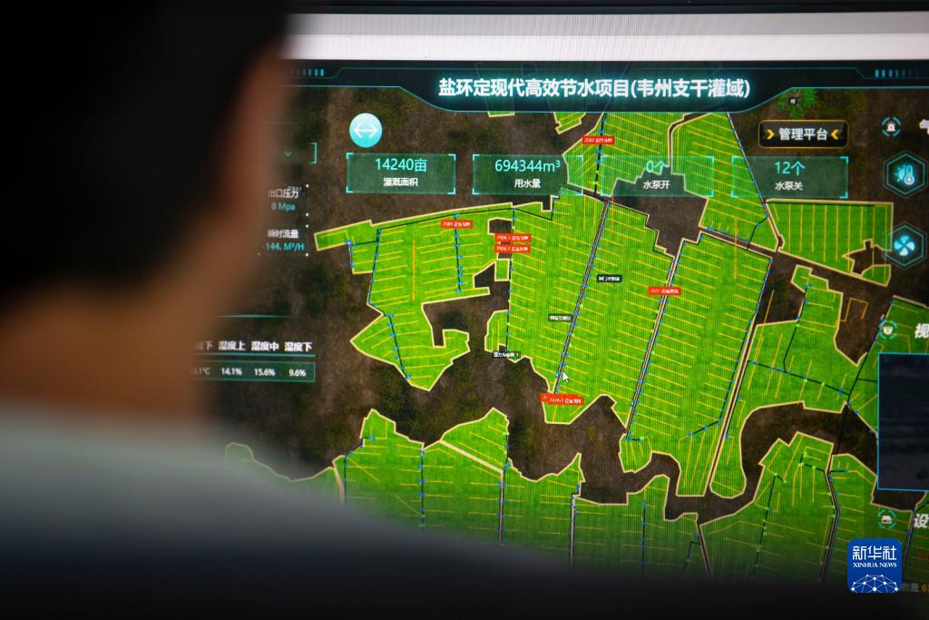 寧夏吳忠市同心縣韋州鎮,工作人員在展示節水灌溉運行管理信息化平臺(9月14日攝)。