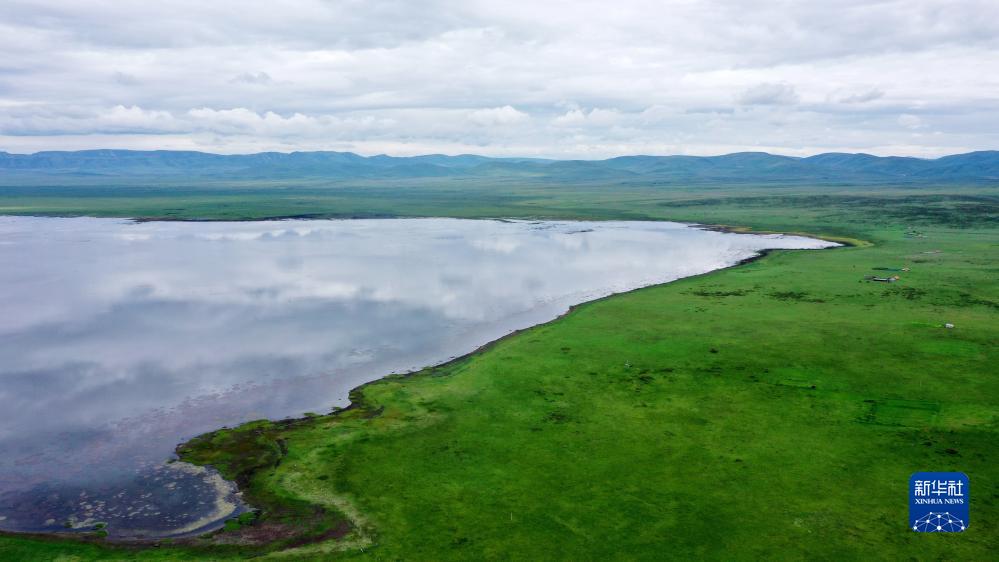 這是甘肅尕海則岔國家級自然保護區尕海湖的景色(7月7日攝,無(wú)人機照片)。