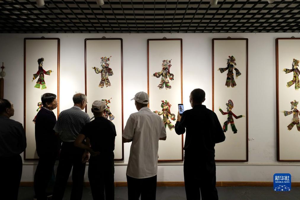 9月16日,市民在玉田縣“非遺會(huì )客廳”展室內參觀(guān)展出的皮影人。