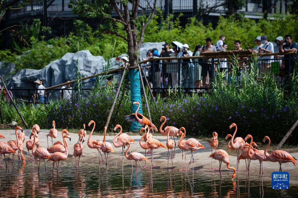 9月16日,游客在武漢動(dòng)物園參觀(guān)大紅鸛。