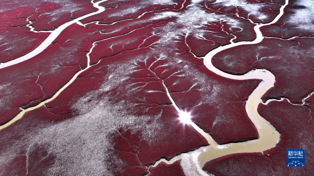 遼寧省盤(pán)錦紅海灘國家風(fēng)景廊道景區內的紅海灘(9月12日攝,無(wú)人機照片)。