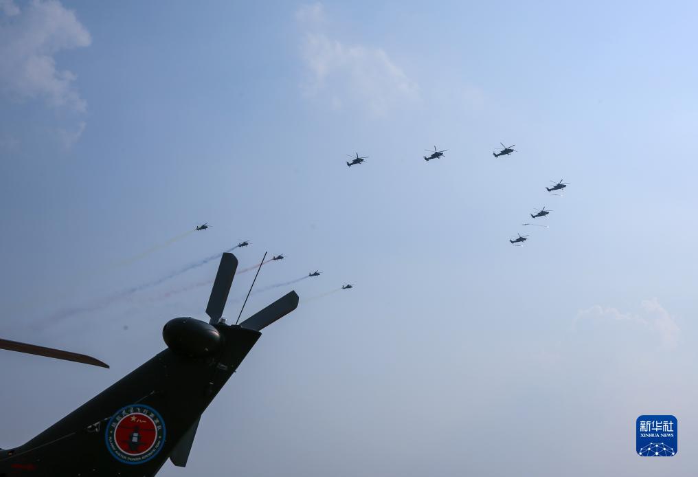 9月16日,陸軍“風(fēng)雷”飛行表演隊組成“八一”字樣通場(chǎng)。