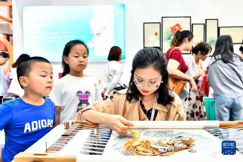 9月16日,在山東國際會(huì )展中心,來(lái)自湖南的非遺傳承人現場(chǎng)展示湘繡技藝。