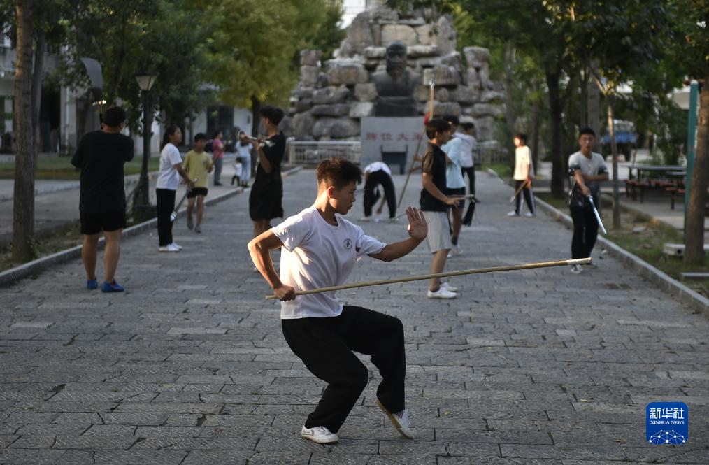 9月14日,河南溫縣陳家溝一家武術(shù)學(xué)校的學(xué)員在戶(hù)外練功。