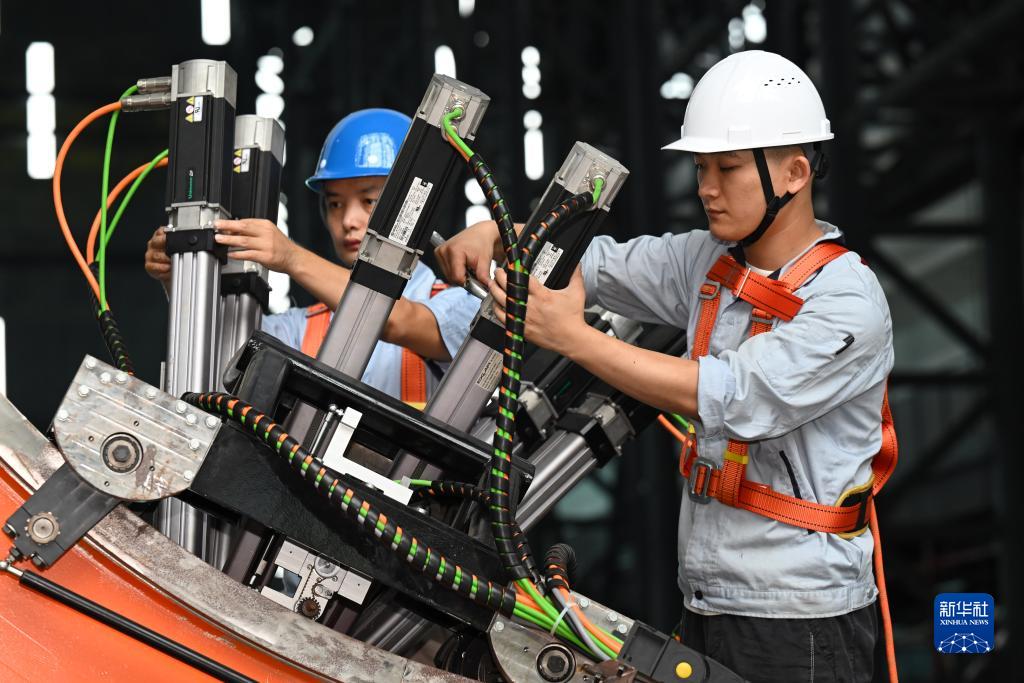 9月15日,工作人員在聚變堆主機關(guān)鍵系統綜合研究設施(CRAFT)1/8真空室及總體安裝實(shí)驗平臺進(jìn)行設備調試。