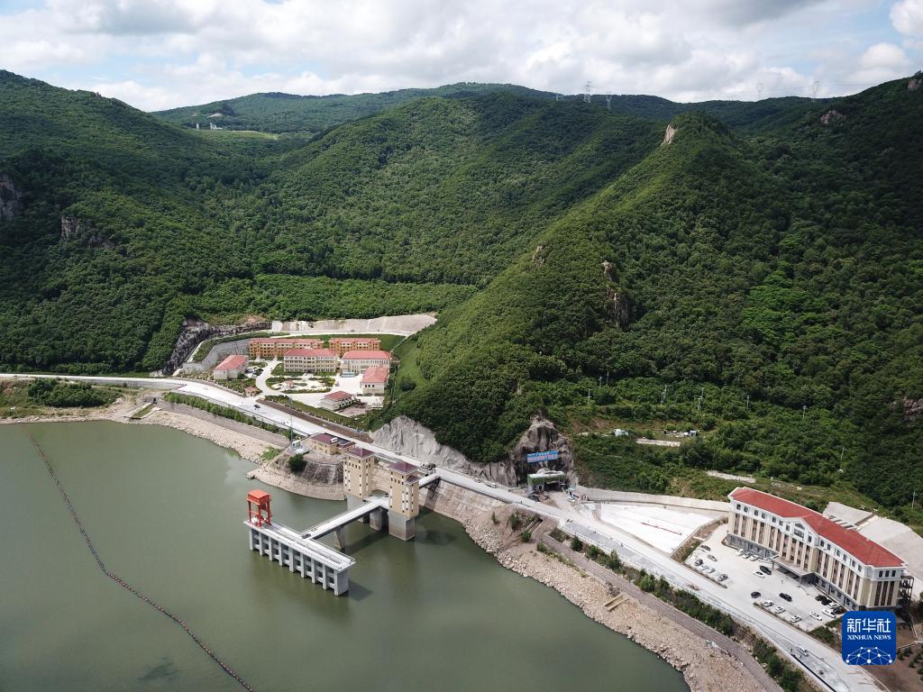 國網(wǎng)新源黑龍江荒溝抽水蓄能電站下水庫一角(2022年6月29日攝,無(wú)人機照片)。