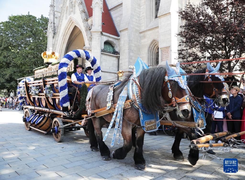 9月16日,人們駕駛本地著(zhù)名啤酒品牌的馬車(chē)參加德國慕尼黑啤酒節開(kāi)幕大游行。