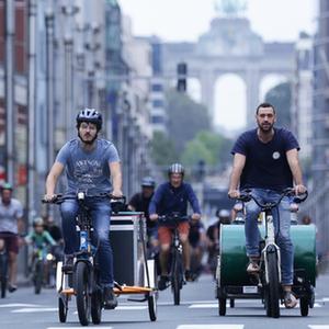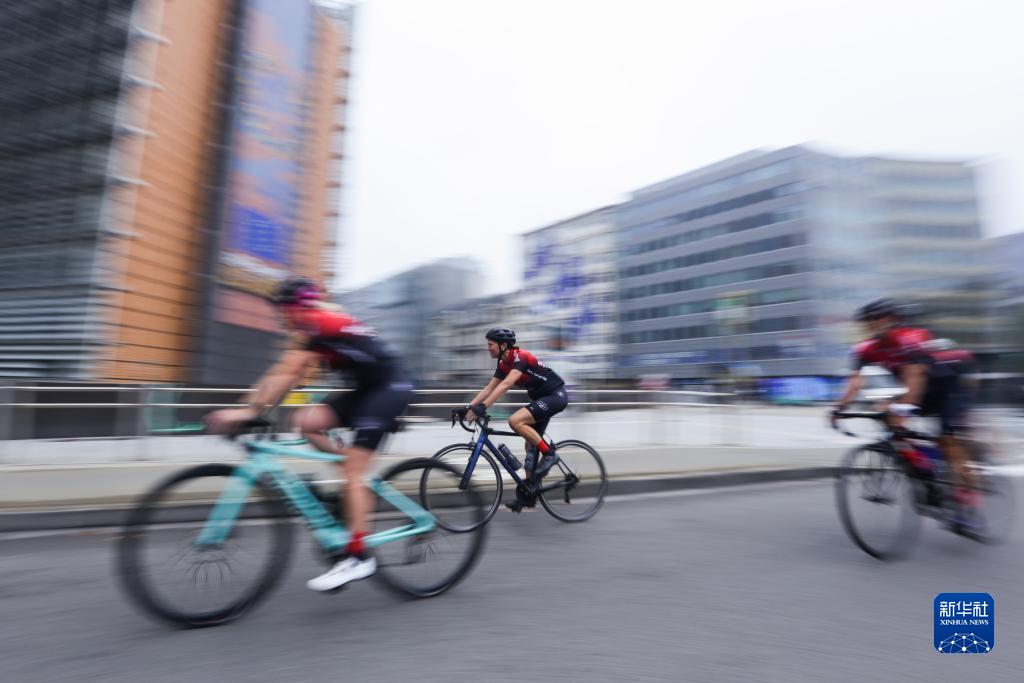 9月17日,人們在比利時(shí)布魯塞爾的“無(wú)車(chē)日”騎自行車(chē)出行。