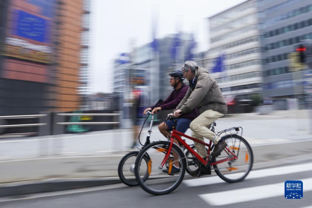 9月17日,人們在比利時(shí)布魯塞爾的“無(wú)車(chē)日”騎自行車(chē)出行。