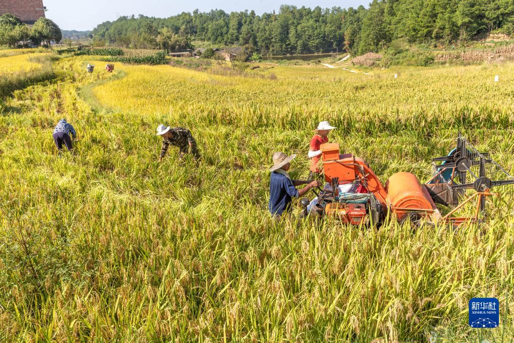 9月17日,重慶市南川區福壽鎮大石壩村村民在收割“定制水稻”。