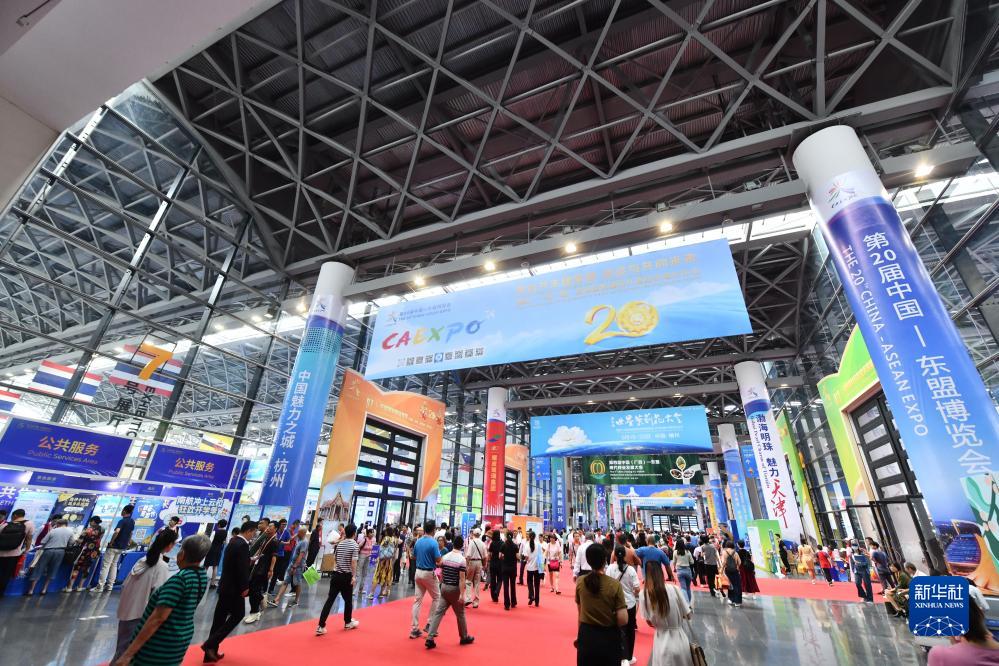 9月18日,在南寧國際會(huì )展中心,觀(guān)眾前往東盟國家商品館選購商品。