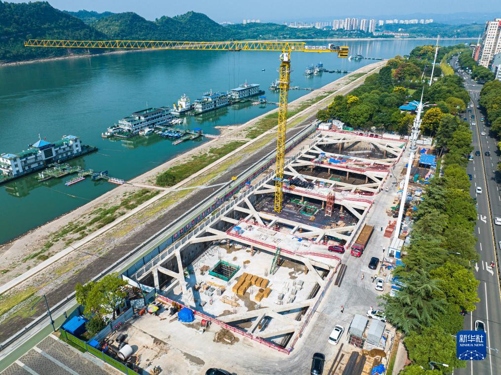 9月17日,三峽集團旗下長(cháng)江環(huán)保集團建設者在宜昌市“一江兩岸”污水廠(chǎng)網(wǎng)新建、改擴建項目大公橋調蓄池施工現場(chǎng)加緊建設(無(wú)人機照片)。