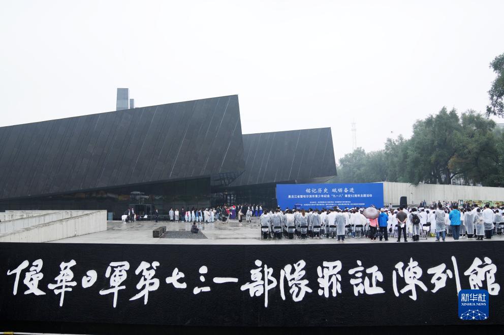 9月18日,人們在侵華日軍第七三一部隊罪證陳列館廣場(chǎng)參加主題活動(dòng)。