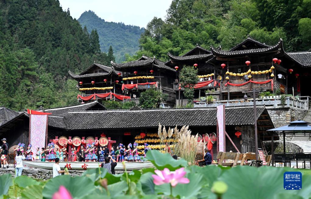 金秋時(shí)節,湖北省恩施土家族苗族自治州宣恩縣彭家寨古吊腳樓群景色如畫(huà)。吊腳樓群四周稻田成熟泛黃,樓上居民懸掛玉米點(diǎn)綴其間,古寨豐收圖景吸引游客前往感受金秋收獲的喜悅。彭家寨是鄂西山區保存完好的土家族民居群落,寨內吊腳樓建筑精美,古色古香。