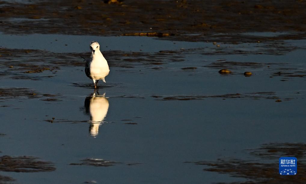 鳥(niǎo)兒棲息在鹽城東臺條子泥濕地灘涂(2023年8月31日攝)。