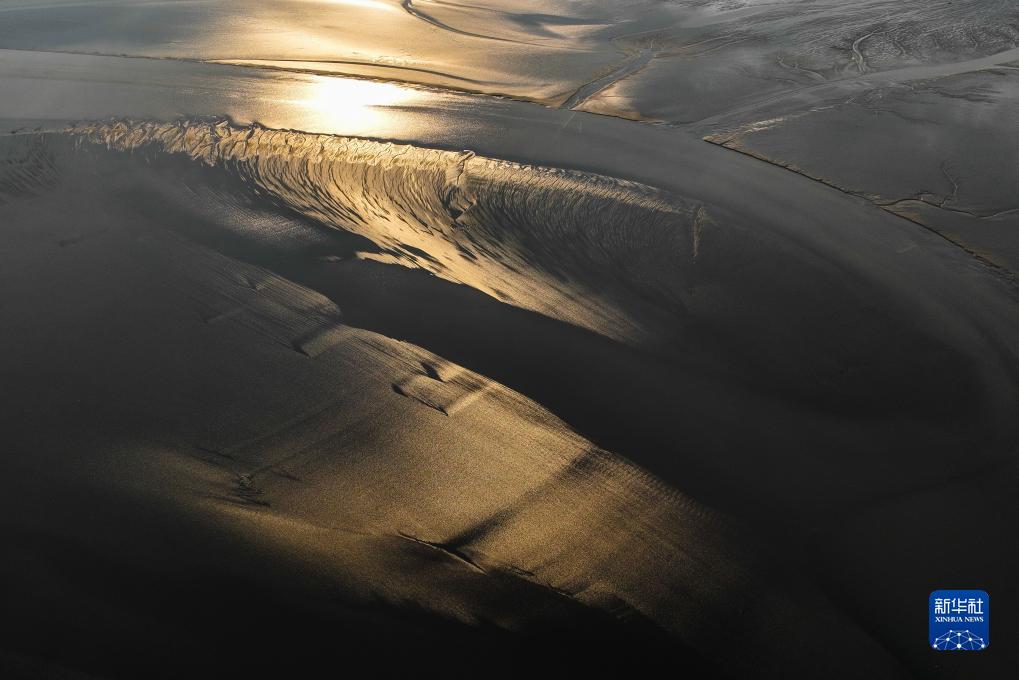 鹽城東臺條子泥濕地日出時(shí)分景色(2023年9月1日攝,無(wú)人機照片)。