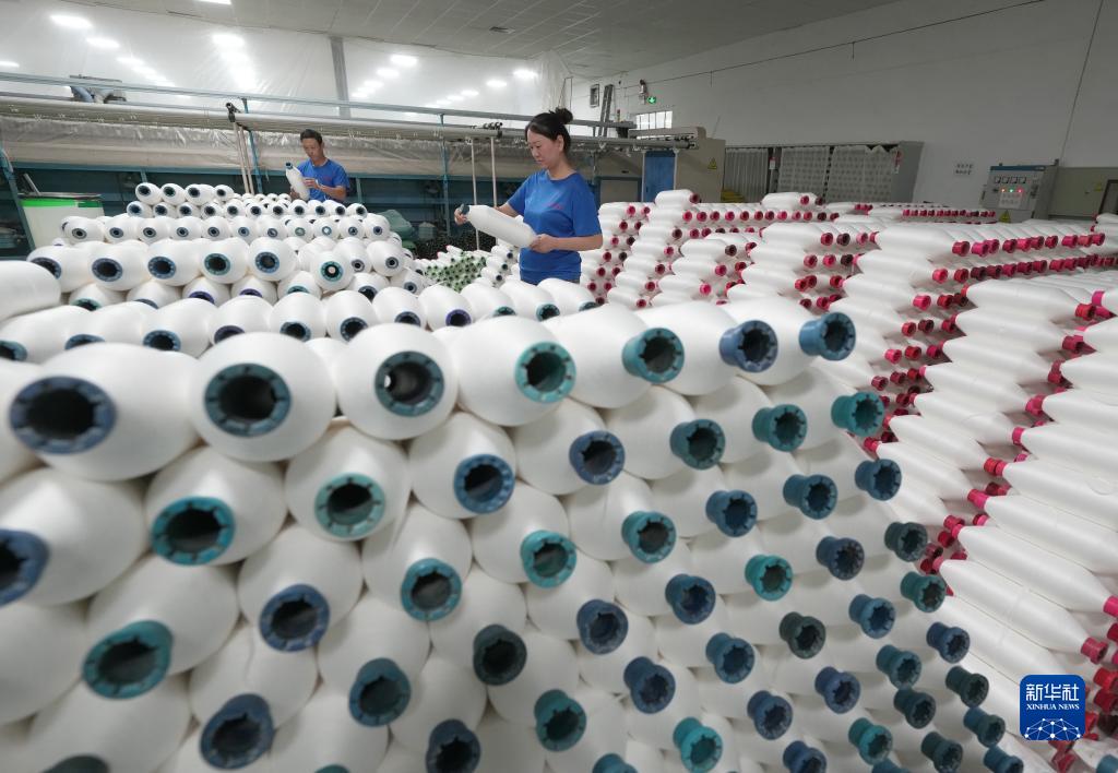9月19日,工人在晉州市一家紡織企業(yè)的生產(chǎn)車(chē)間工作。