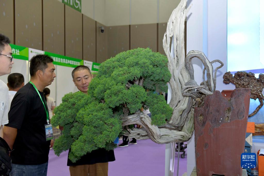9月19日,在菏澤國際會(huì )展中心,觀(guān)眾在參觀(guān)盆景藝術(shù)。