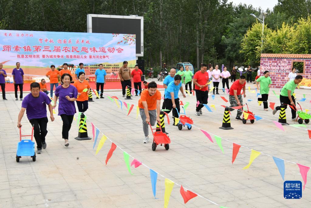 當日,河北省滄州市肅寧縣師素鎮舉辦農民趣味運動(dòng)會(huì ),人們通過(guò)參與運花生、貼辣椒、豆類(lèi)分揀等趣味運動(dòng)項目,慶祝豐收。