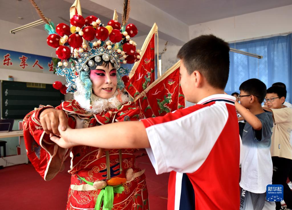 9月19日,威縣亂彈傳承人時(shí)敬華向白果樹(shù)中心小學(xué)學(xué)生傳授亂彈技藝。