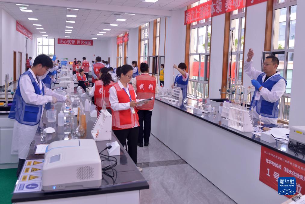 9月19日,在河北省建設行業(yè)職業(yè)技能競賽決賽現場(chǎng),選手在進(jìn)行水樣中氨氮含量測定比賽。