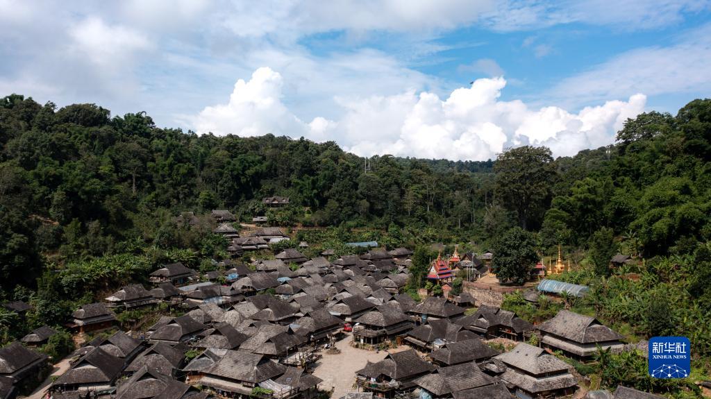 9月14日拍攝的景邁山糯崗老寨一景(無(wú)人機照片)。