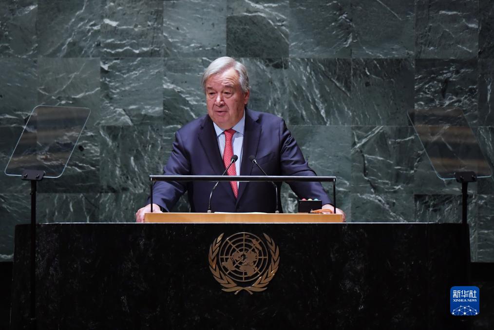 9月19日,在位于紐約的聯(lián)合國總部,聯(lián)合國秘書(shū)長(cháng)古特雷斯在第78屆聯(lián)合國大會(huì )一般性辯論開(kāi)幕式上講話(huà)。