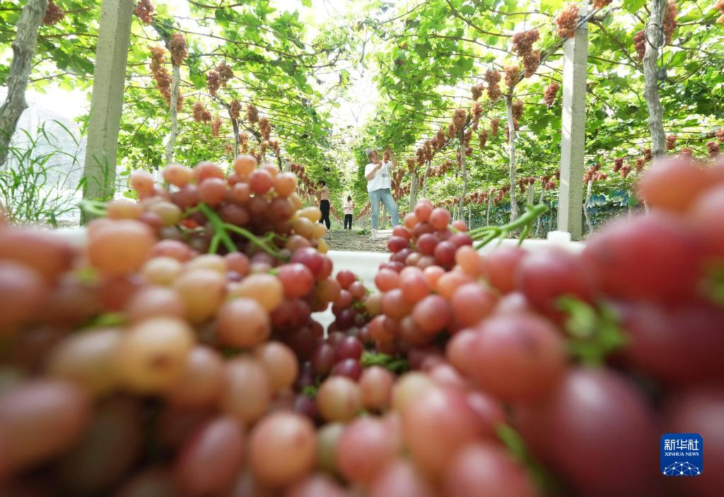 9月20日,河北省晉州市馬于鎮北辛莊村一家葡萄種植合作社的社員在采收成熟的葡萄。