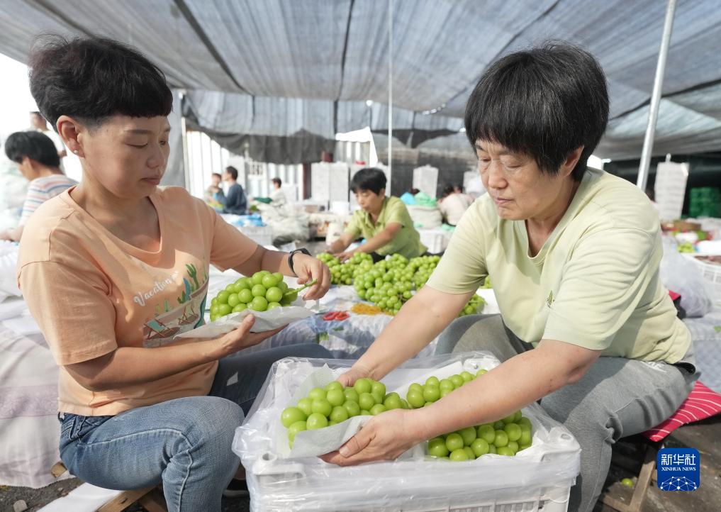 9月20日,河北省晉州市馬于鎮北辛莊村一家葡萄種植合作社的社員在將采摘的葡萄分揀、裝箱。