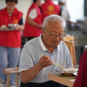 9月20日,河北省南宮市富強社區的老人在“老年食堂”內就餐。