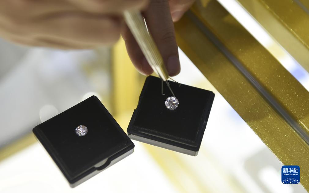 9月20日,在鄭州國際會(huì )展中心,參展企業(yè)的工作人員展示培育鉆石。