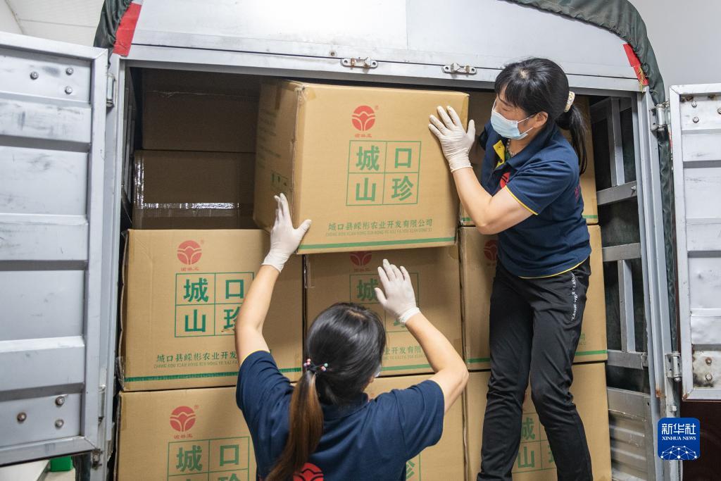 9月20日,在重慶市城口縣嶸彬農業(yè)開(kāi)發(fā)有限公司,工人在裝運風(fēng)干加工后的食用菌。