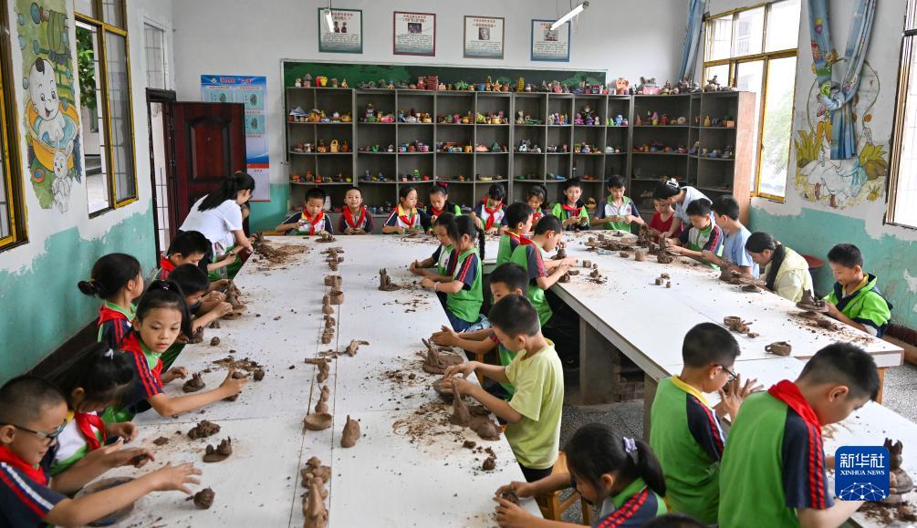 9月20日,重慶市忠縣烏楊小學(xué)泥塑社團的學(xué)生在學(xué)習、體驗泥塑。