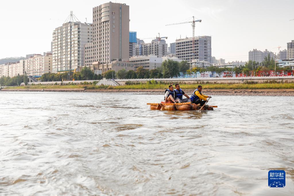 牛強帶著(zhù)游客在黃河甘肅蘭州段體驗羊皮筏子(9月5日攝)。
