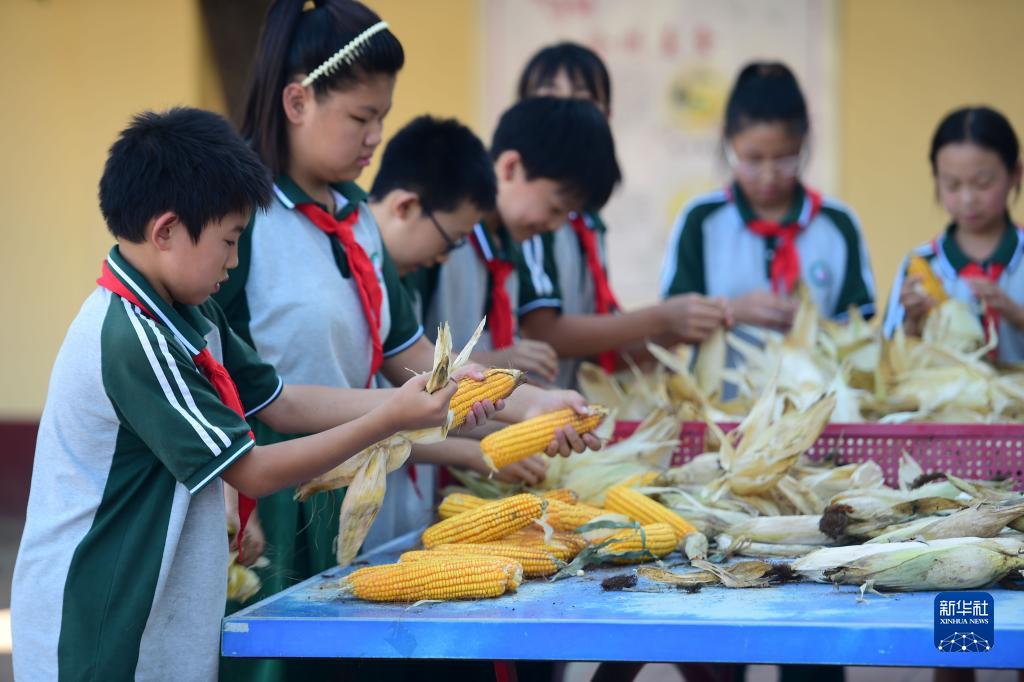 9月21日,滄州市新華區榮官屯小學(xué)的小學(xué)生在進(jìn)行剝玉米皮比賽。