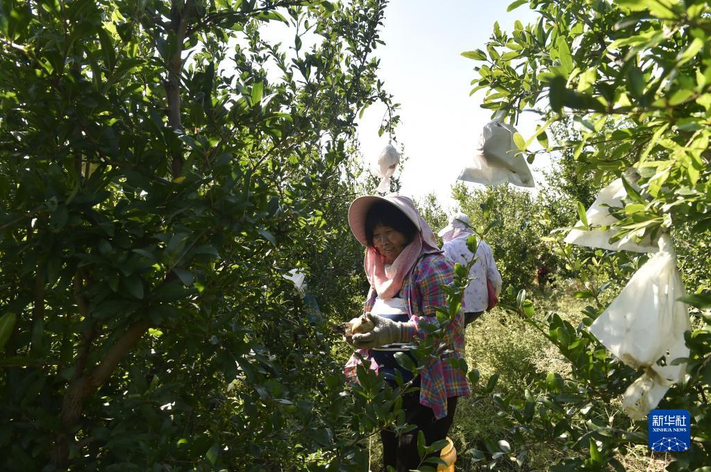 9月21日,村民在“拾榴花果山”農業(yè)生態(tài)園里采摘石榴。