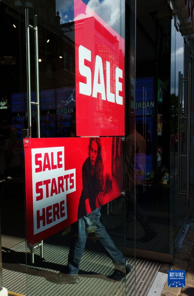 9月21日,在英國曼徹斯特,一名購物者走進(jìn)一家打折店鋪。