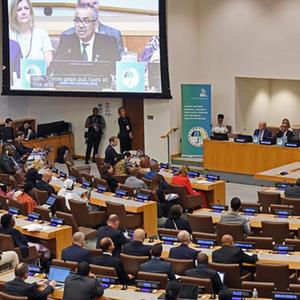 這是9月21日在位于紐約的聯(lián)合國總部拍攝的第二次聯(lián)合國全民健康覆蓋問(wèn)題高級別會(huì )議現場(chǎng)。
