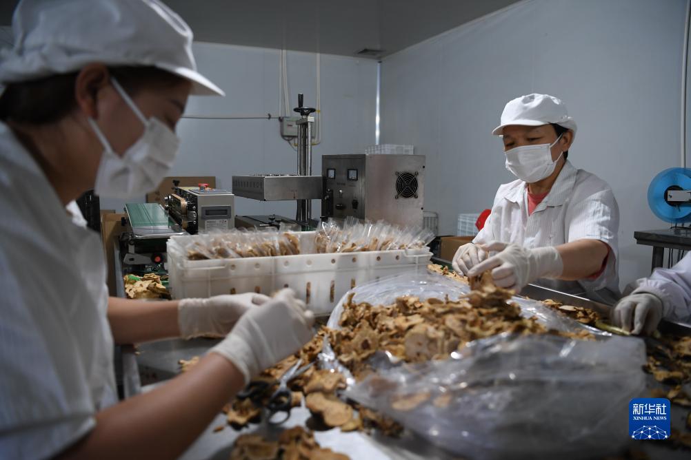 9月22日,趙縣雪香食品有限公司的工人在包裝梨干產(chǎn)品。新華社記者 牟宇 攝