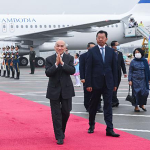 9月22日下午,來(lái)華出席杭州亞運會(huì )開(kāi)幕式的柬埔寨國王西哈莫尼抵達浙江省杭州市。