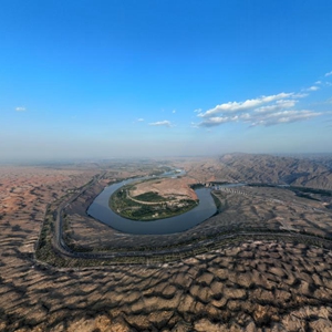黃河在流經(jīng)甘肅后,奔騰一路蜿蜒向東,在即將進(jìn)入“幾”字彎時(shí)劃出一個(gè)完美的半圓,圓弧外是騰格里沙漠的無(wú)垠瀚海,圓弧內河水滔滔,滿(mǎn)目蒼翠。大自然的厚愛(ài),讓水和沙在寧夏中衛市沙坡頭邂逅,形成沙水交融的獨特景觀(guān)。