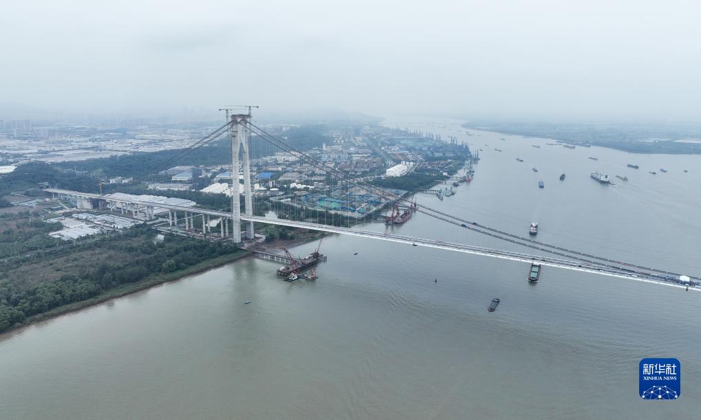 9月23日拍攝的南京仙新路過(guò)江通道跨江大橋(無(wú)人機照片)。