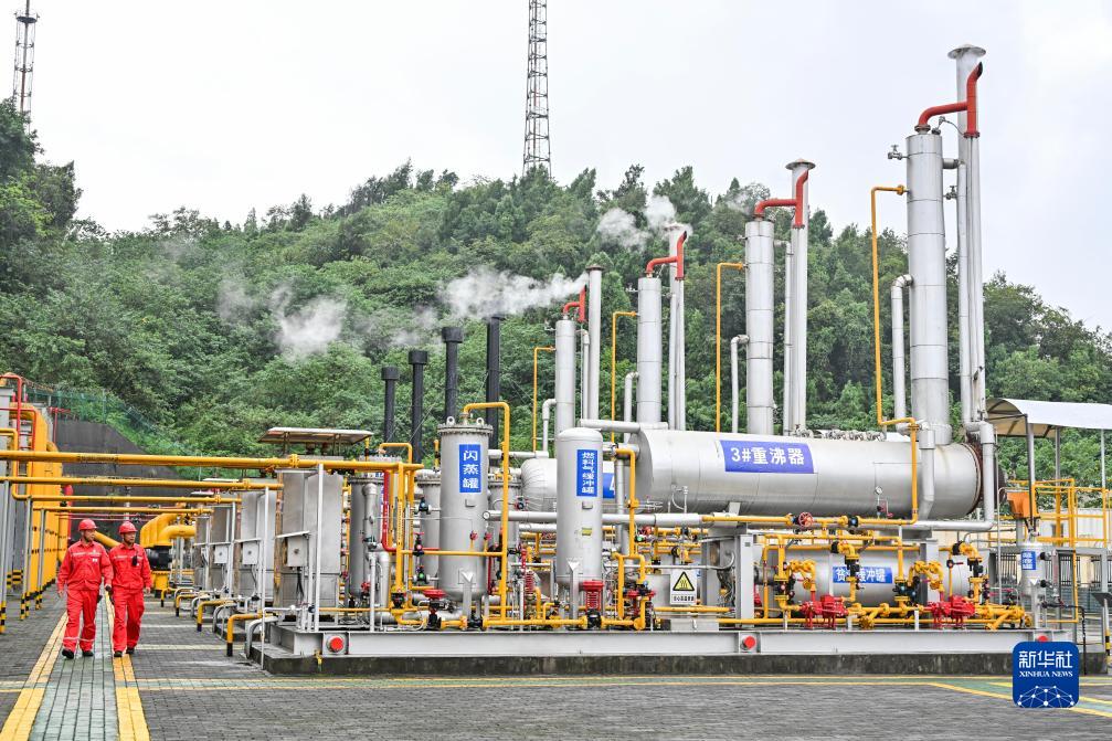 位于重慶忠縣的涪陵頁(yè)巖氣田興頁(yè)L1001井生產(chǎn)作業(yè)現場(chǎng)(9月19日攝,無(wú)人機照片)。