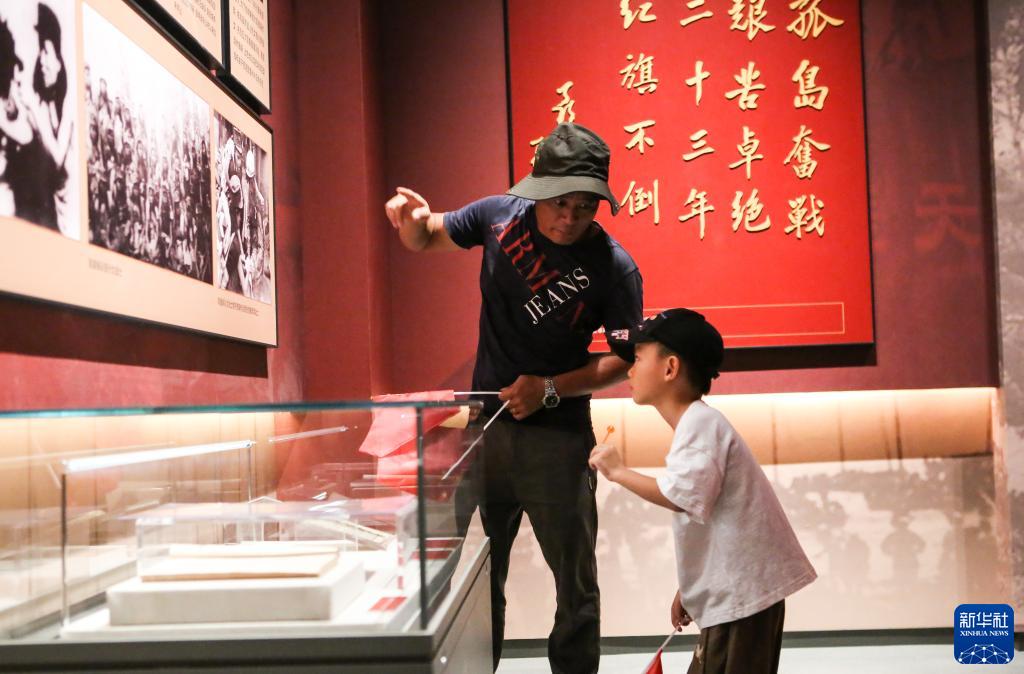 9月23日,在紅色娘子軍紀念園,家長(cháng)為小朋友講述歷史。