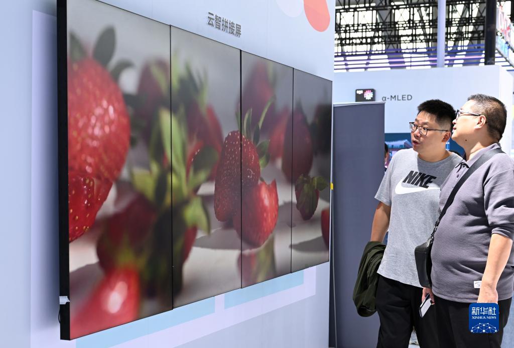 9月22日,觀(guān)眾在2023世界制造業(yè)大會(huì )集成電路與新型顯示展區觀(guān)看一款拼接屏。