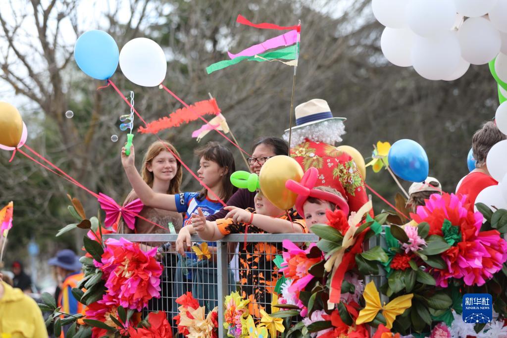 這是9月23日在新西蘭黑斯廷斯拍攝的“迎春花車(chē)巡游日”活動(dòng)現場(chǎng)。