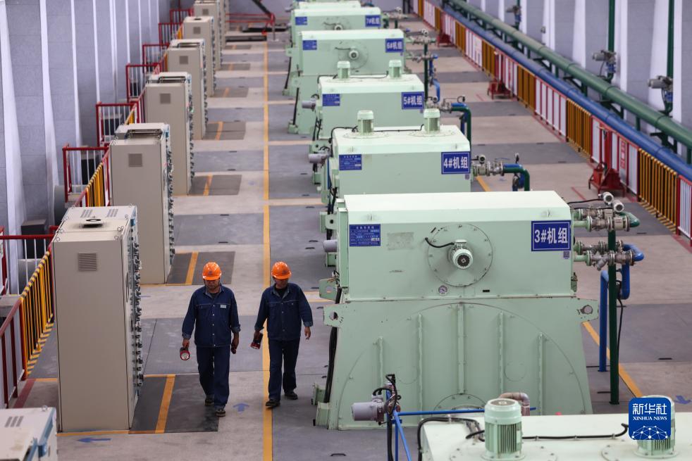 工作人員在寧夏紅寺堡揚水管理處紅三泵站進(jìn)行巡檢(9月7日攝)。