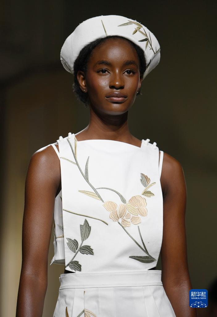 9月24日,模特在意大利米蘭時(shí)裝周上展示含有貴州苗繡元素的設計時(shí)裝。